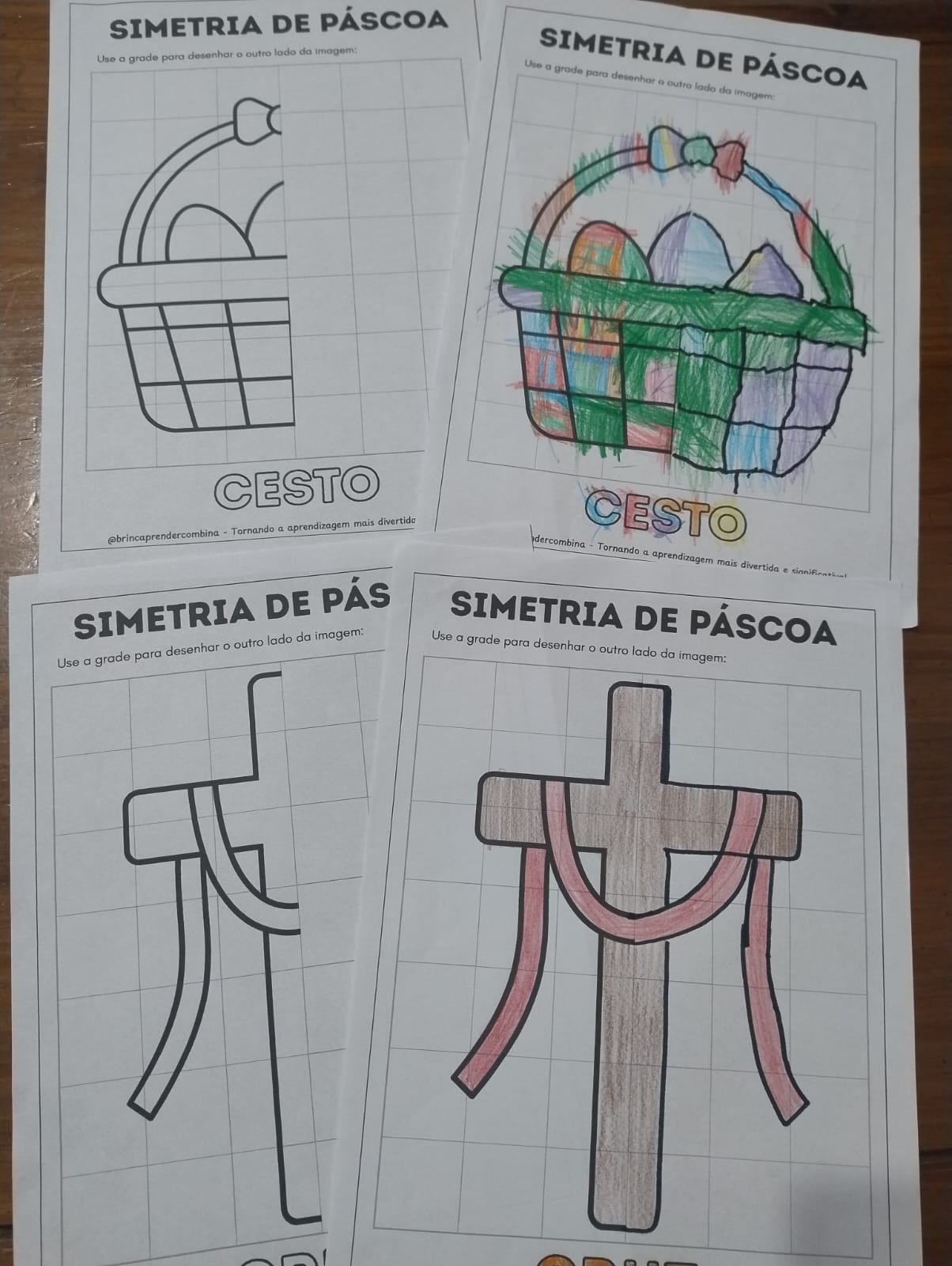 Este arquivo traz atividades de simetria com imagens temáticas da Páscoa para colorir e completar, promovendo o raciocínio espacial e a noção de equilíbrio visual de forma lúdica e significativa.